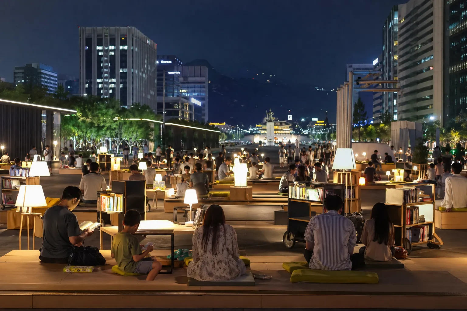 For night readers, the appeal is simple: the square becomes usable after the hottest or busiest part of the day, with the reading experience supported by evening lighting. A Seoul city citizen-reporter article from the opening period noted scenes of people reading under nighttime lights at Gwanghwamun Book Madang. 1 That detail matters for planning because the night program is not only about later hours; it changes the atmosphere of the space.